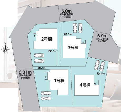 道路位置 | 西側 6.0m / 北側 6.0m | ||